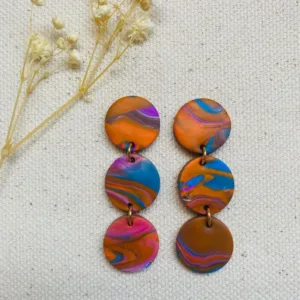 Pendientes artesanales de arcilla polimérica con postes de acero inoxidable, un material hipoalergénico.
