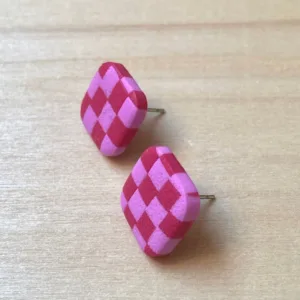 Pendientes artesanales de arcilla polimérica con postes de acero inoxidable, un material hipoalergénico.