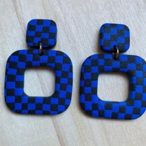 Pendientes artesanales Squares de arcilla polimérica con postes de acero inoxidable, un material hipoalergénico.